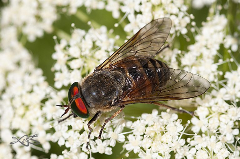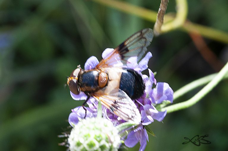 Suborden Brachycera / Cyclorrhapha/ Syrphidae/ Eristalinae indet./ Milesia spec. Outro sírfido grande imitando a avespa, neste caso a Vespa crabro, non moi común e que se pode ver desde a metade da primavera ata principios de outono perto de carballeiras ou zonas de caducifolios. A foto de Castro de Rei (Lagoa de Caque) é obra…