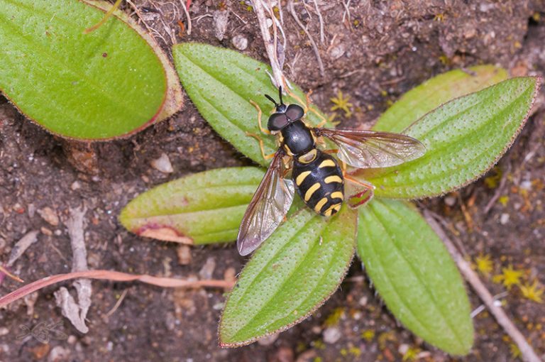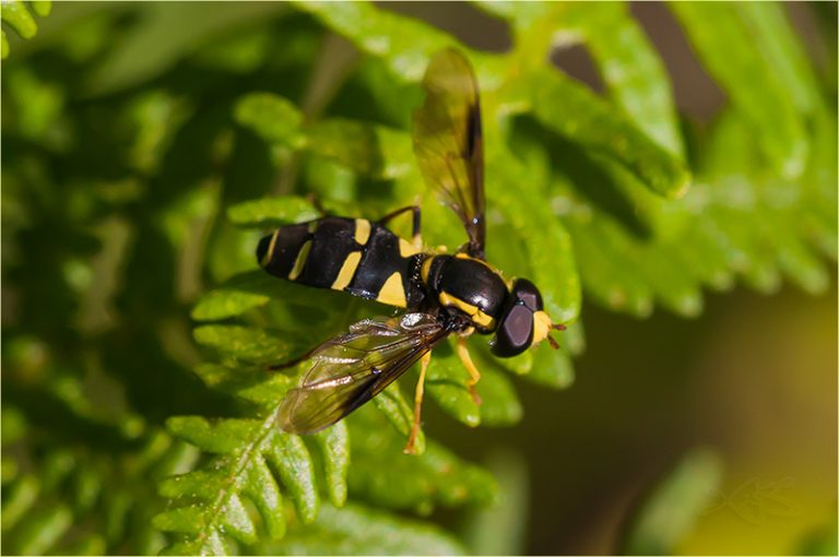 Suborde Brachycera/ Cyclorrhapha/ Syrphidae/ Syrphinae indet./ Xanthogramma spec. Xanthogramma citrofasciatum (de Geer), 1776 Pódese atopar en terreos abertos preferiblemente calcáreos. Voa baixo a través das herbas, moitas veces aséntase nos montículos dos niños das formigas do xénero Lasius. Acude ás flores de Convolvulus, Euphorbia, Scabiosa, Taraxacum. Voa de maio a xuño. No sur de Europa…