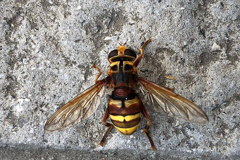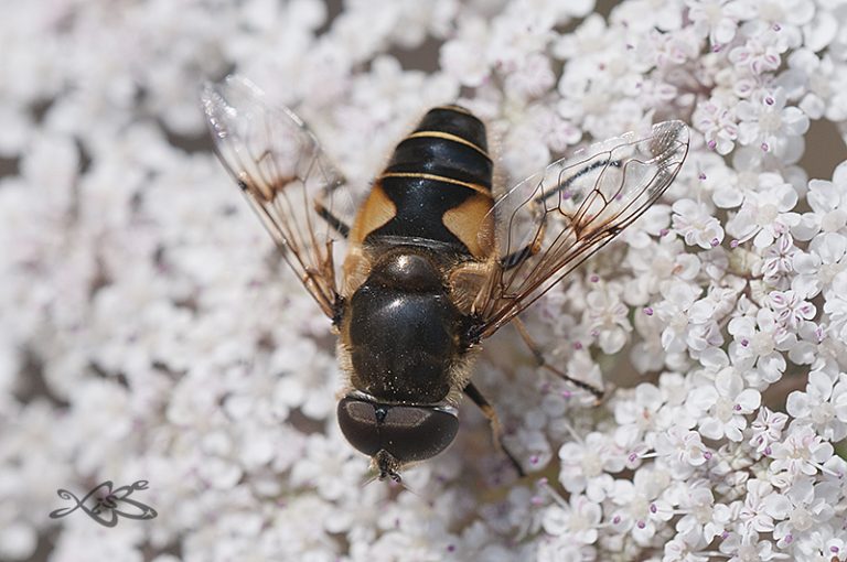 Orde Diptera/ Suborde Brachycera/ Cyclorrhapha/ Syrphidae/ Eristalinae / Myathropa spec. Outra mosca de tamaño grande e robusta, común nas umbelíferas e perto de áreas con arbres. Nas fotos vese un macho (ollos xuntos) fotografado en Monterrei en marzo de 2016 e unha femia (ollos separados) retratada en Oimbra en xuño de 2016. Oimbra, 02/06/2016 Oimbra,…