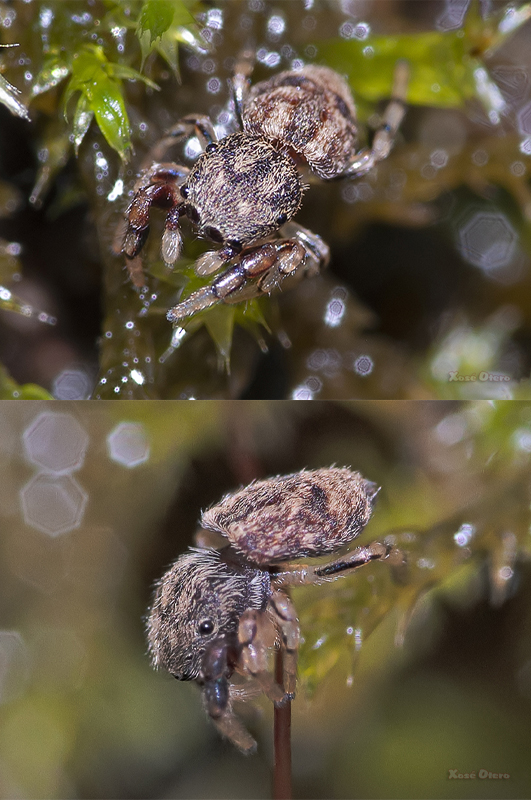 É unha araña, como a maioría dos saltícidos, de pequeno tamaño: