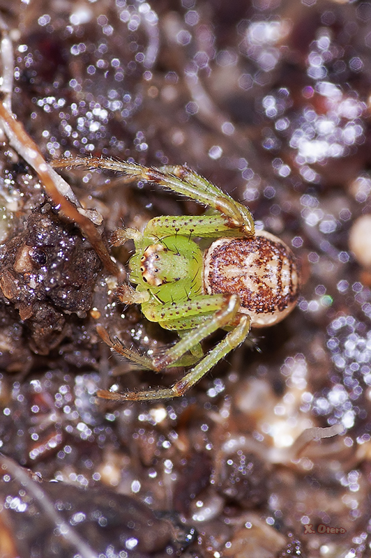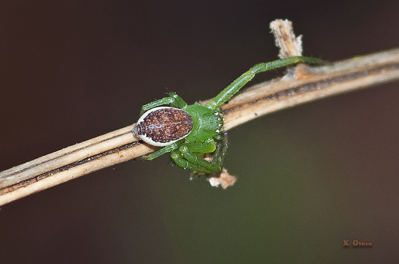 Pequena araña da familia Thomisidae Sundevall, 1833 (arañas caranguexo).