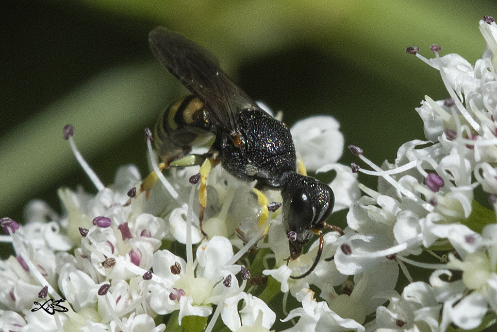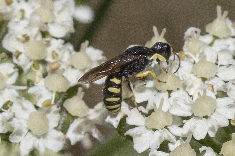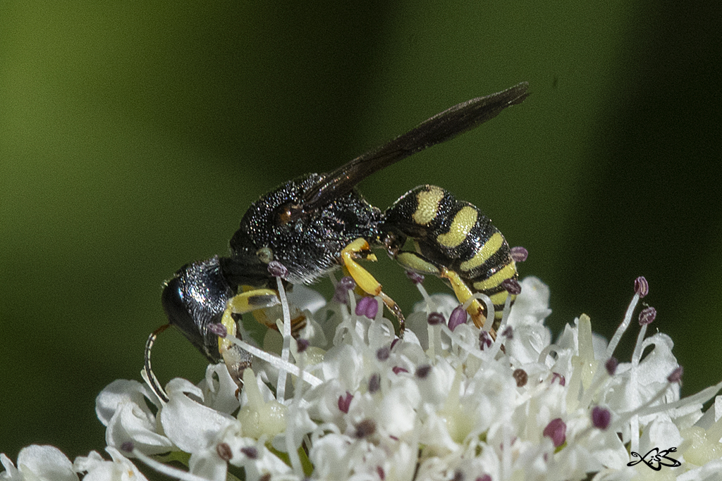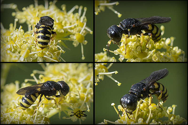 Característica dos machos é esa cabeza estreitada cara atrás coma un funil. A femia é máis parecida cunha avespa Ectemnius spec.(Crabronidae)