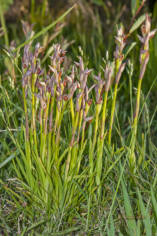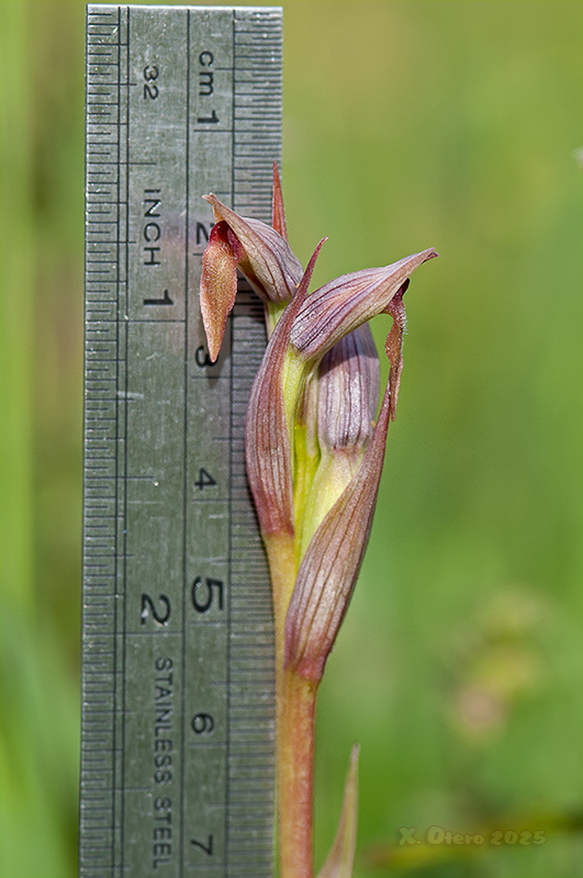 A máis escasa das 3 especies de Serapias con distribución galega. Só temos fotografías de 2-3 (quizais 3 a falta dunha revisión do arquivo fotográfico na data da redacción desta nota) localizacións chairegas. Unha delas está irreversiblemente desaparecida.