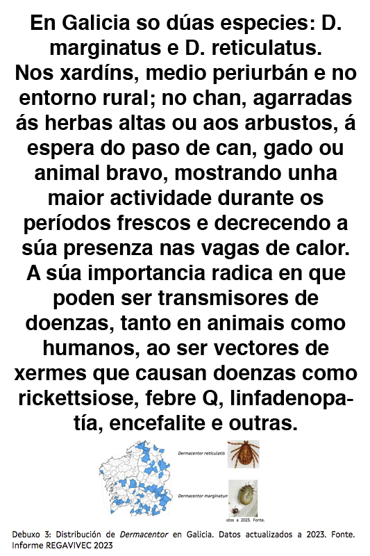 Dada a importancia do aspecto sanitario, a Xunta de Galicia, a traverso da Dirección Xeral de Saúde Pública, publicou un texto, datado de agosto 2024, con recomendacións xerais fronte ás carrachas (o mapa de distribución da galería superior foi tomado do devandito traballo).